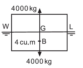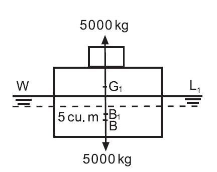 Se colocássemos um peso 1000kg em cima deste corpo, o mesmo se moveria para baixo até que os 5000kg de água fossem deslocados, alcançando o equilíbrio.