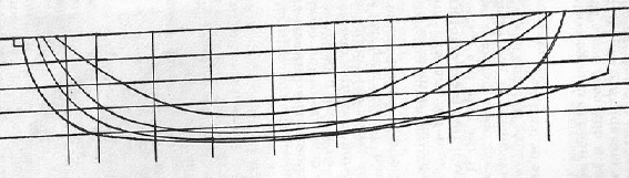 As linhas representam curvaturas e forma geral do casco, e são utilizadas para construção do casco.